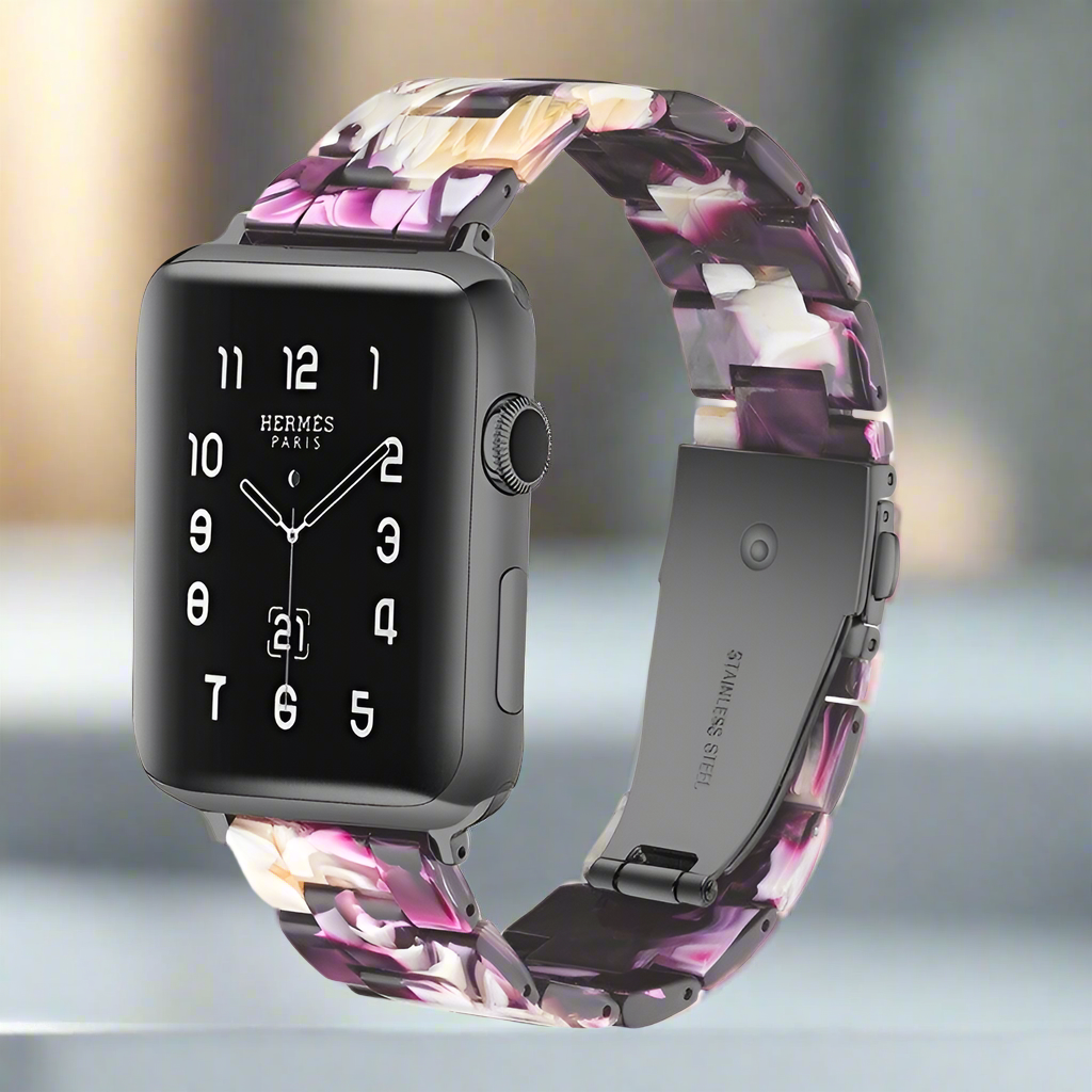 - Combined with premium tortoise-tone Resin, it offers a new bracelet look to your Apple watch. Lighter than stainless steel metal band.